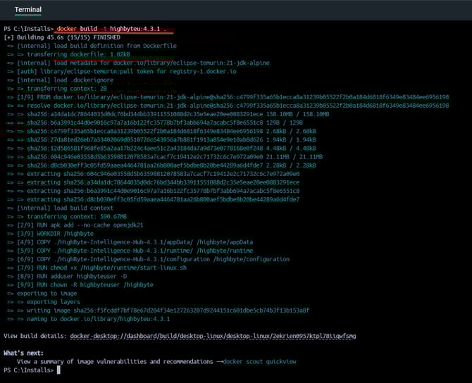 docker build -t highbyteu:4.3.1 .This may take a few minutes to complete.