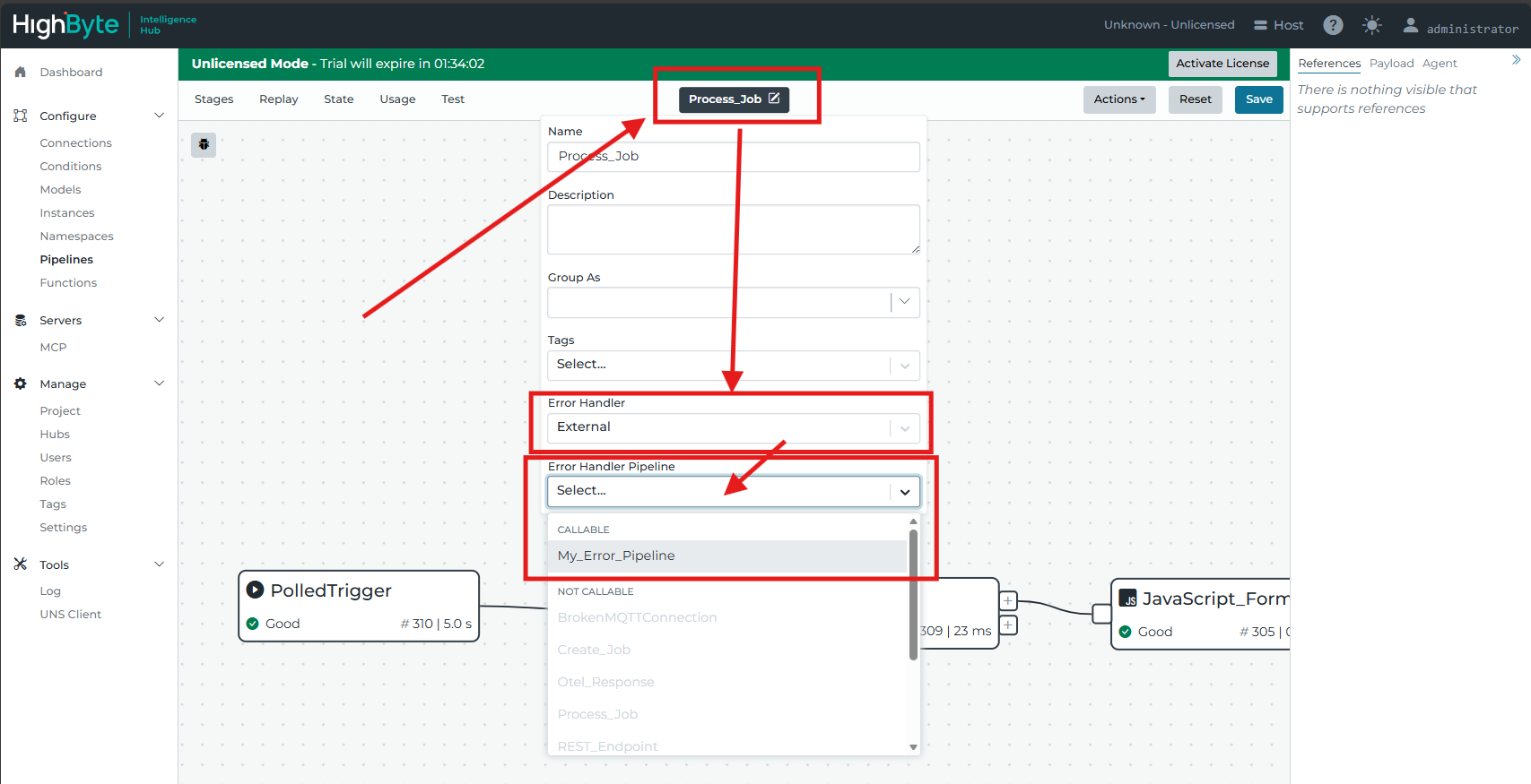 A pipeline must be equipped with a Callable Trigger to be selected as an external error handler pipeline.