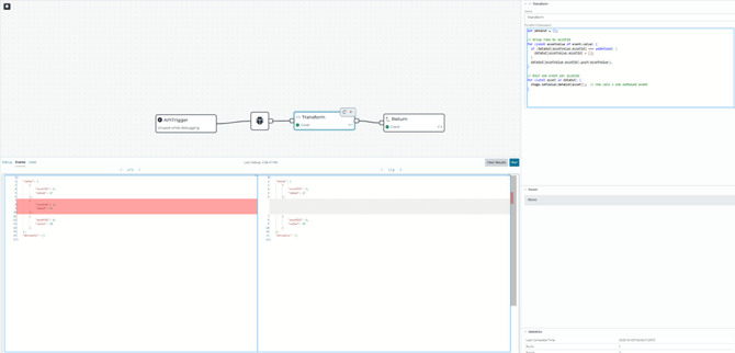 - Use the Pipeline Debug Tool from the Pipeline Graph to simulate inputs and observe how many events your Transform emits and what they contain